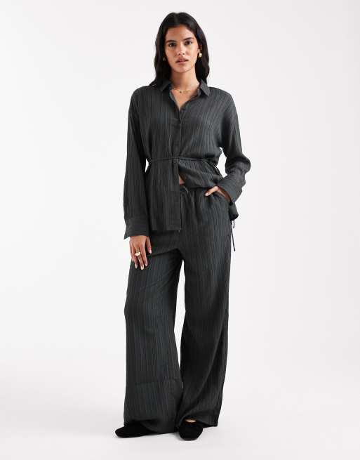 Vero Moda wide leg plisse pants in charcoal grey (part of a set)