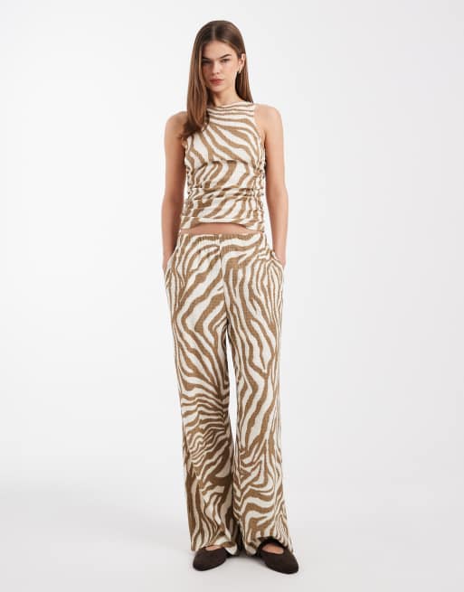 Vero Moda wide leg textured jersey pants in birch abstract print (part of a set)