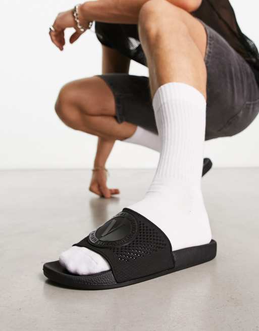 Versace Jeans Couture emblem sliders in black