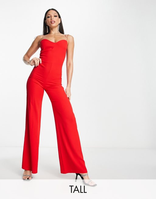 Vesper Tall cami strap flared jumpsuit in red