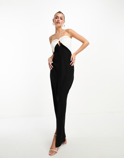 Vesper contrast halterneck maxi dress in black and white