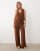 VILA Petite tie front textured singlet set in carafe brown