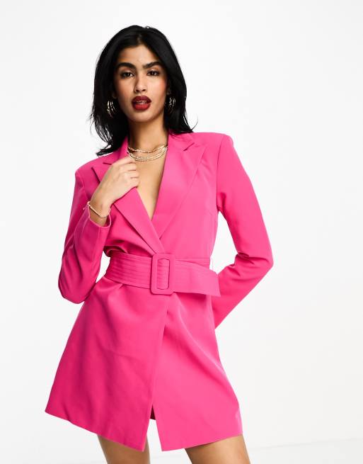 Vila belted tailored blazer mini dress in bright pink