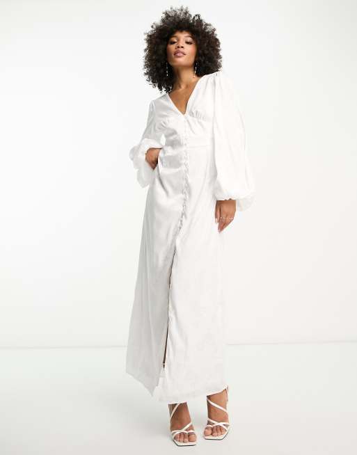 Vila Bridal jacquard button through maxi dress with balloon sleeves in white