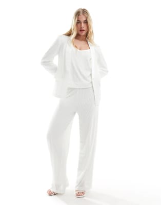 Vila Bridal sequin blazer, cami top and pants set in white