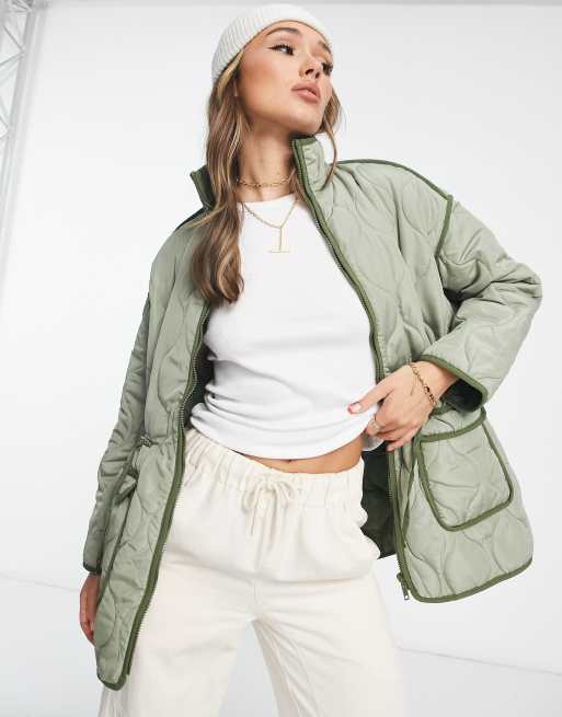 Vila contrast tipping quilted jacket in sage green