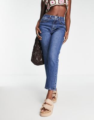 Vila high waisted slim leg cropped jeans in blue