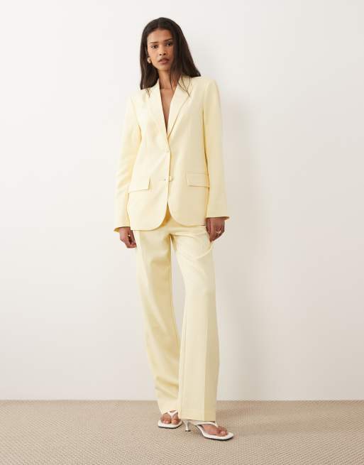VILA tailored covered button blazer and pants set in pastel yellow