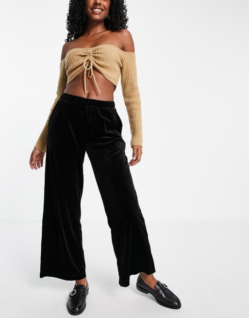 Vila velvet wide-legged pants in black