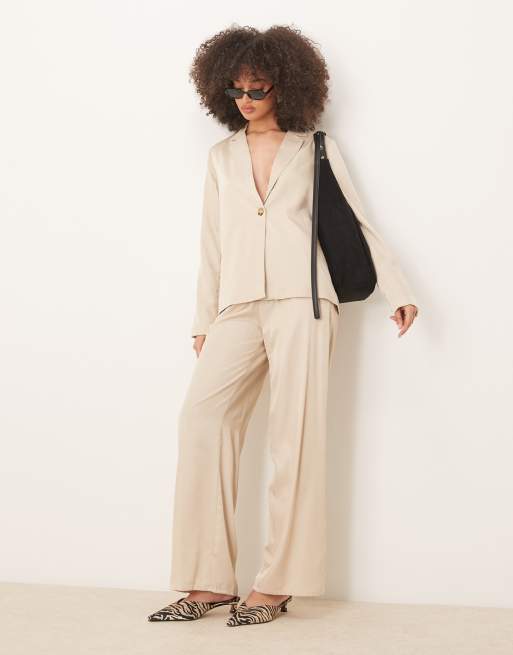 VILA wide leg tie waist pants in oatmeal (part of a set)