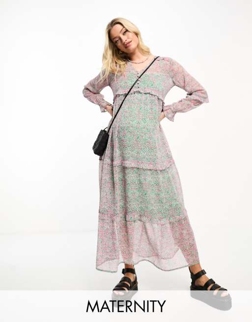 Violet Romance Maternity button front tiered midaxi dress in floral print