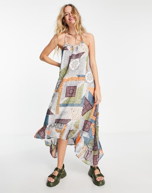Violet Romance cross back trapeze midi dress in patchwork floral print
