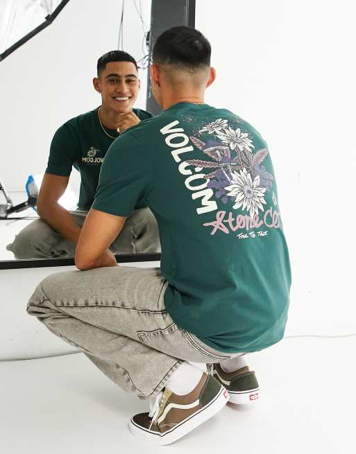 Volcom Psychedaisy back print t-shirt in dark green