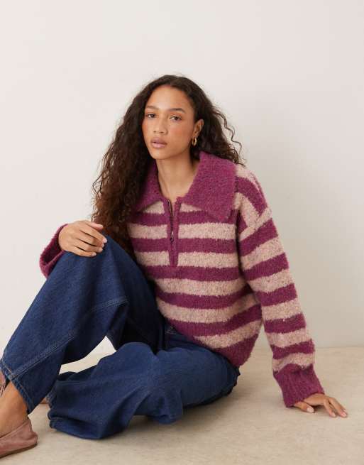 VRG GRL chunky striped collar sweater in pink