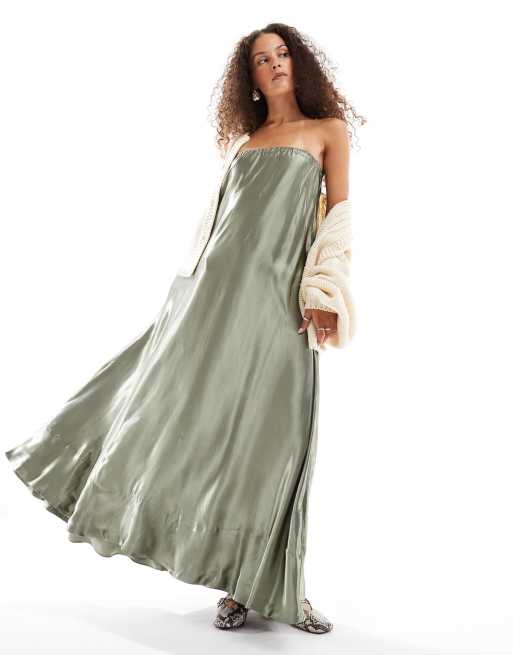 VRG GRL Lenni satin bandeau maxi dress in olive
