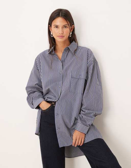 VRG GRL oversized pinstripe shirt in blue