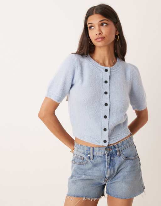 VRG GRL Tessa puff sleeve cardigan in powder blue