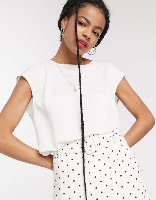 Warehouse satin tipped t-shirt in white
