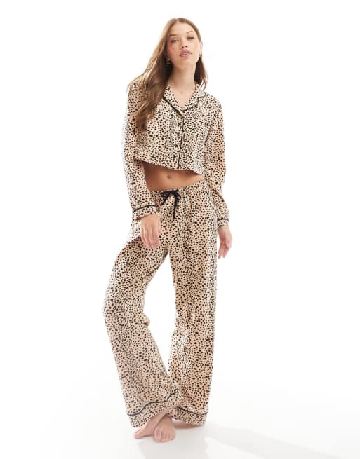 Wednesday's Girl leopard print long sleeve pyjama set in beige