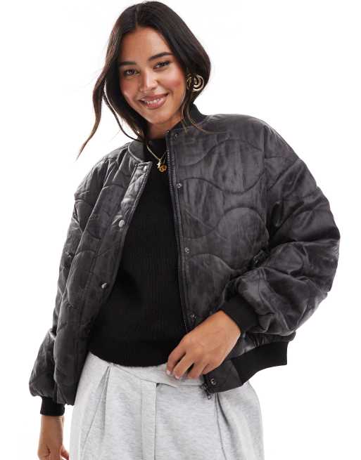 Wednesday's Girl washed effect oversized bomber jacket in dark brown