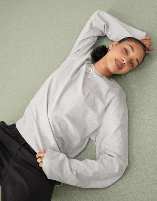 Weekday boxy fit oversized long sleeve t-shirt in grey melange