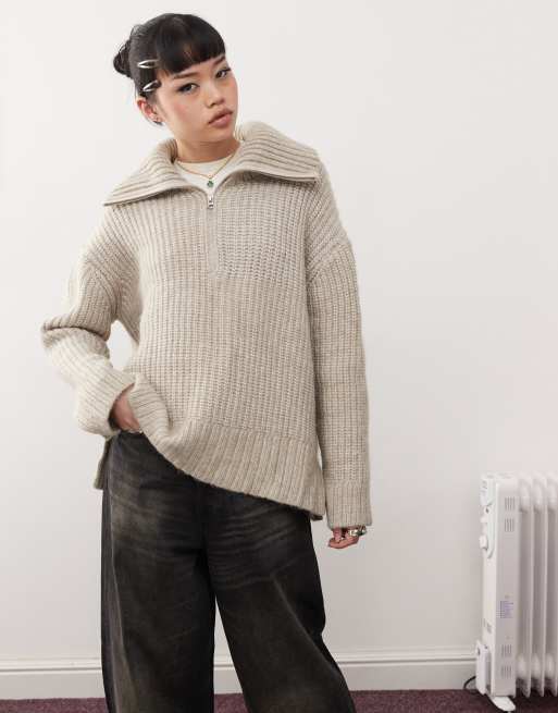 Weekday Cillia half zip jumper in beige melange