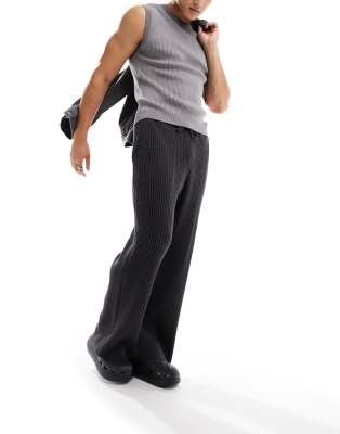 Weekday Darwin loose fit knitted pants in dark grey melange