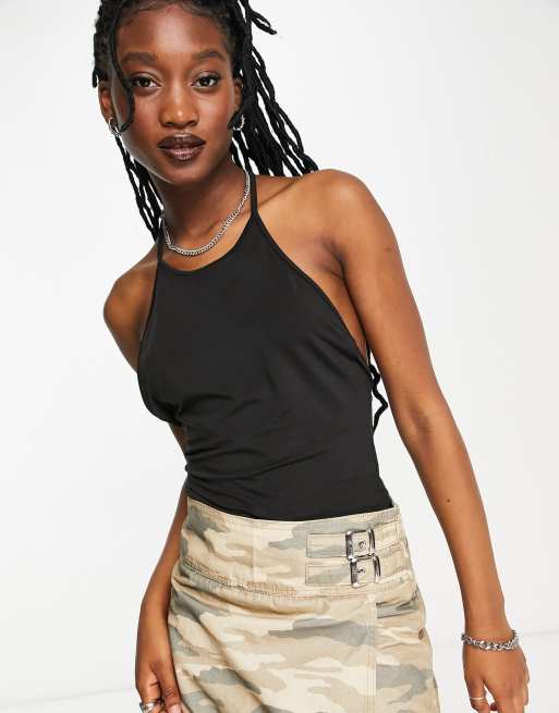 Weekday Deep low back halterneck top in black