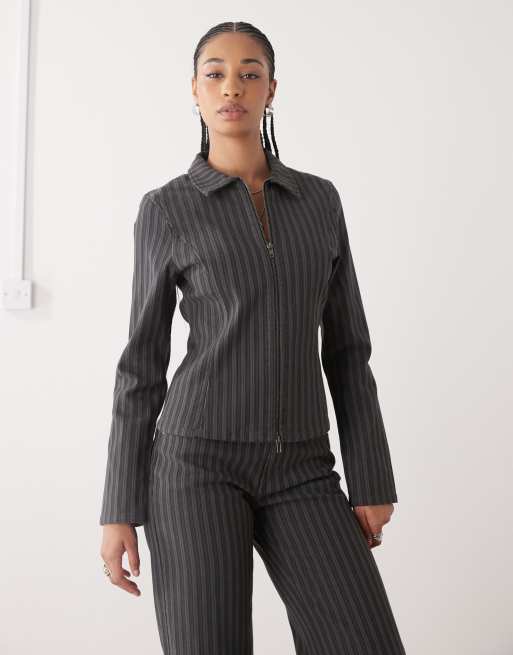 Weekday fitted zip jacket in dark grey pinstripe (part of a set)