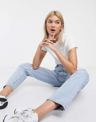 Weekday Forever cotton cropped classic t-shirt in white - WHITE