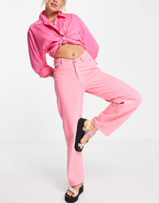Weekday Lara cotton wide leg v front pants in pink - PINK