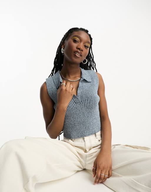 Weekday Liv knitted cropped polo singlet in blue