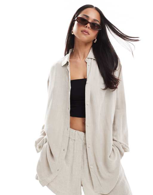 Weekday Perfect linen mix shirt in off white (part of a set)