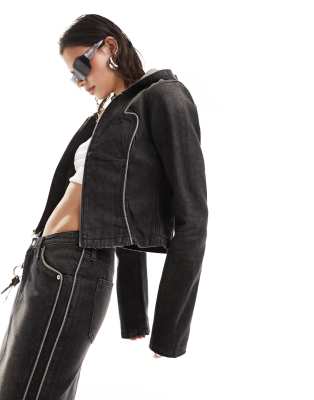 Weekday Portola hooded denim jacket with piping detail in washed black (part of a set)