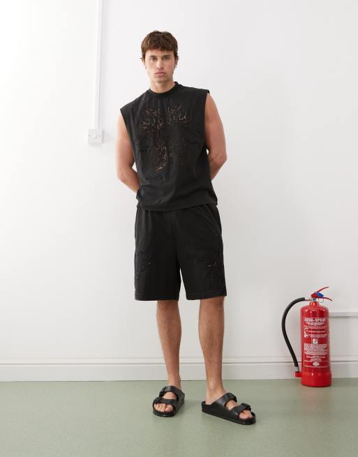 Weekday shorts with broderie anglaise detail in off-black (part of a set)