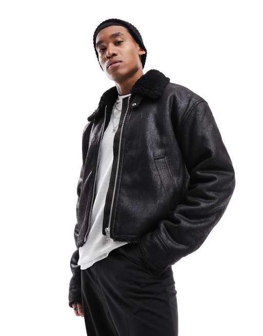 Weekday Sim shearling jacket in black