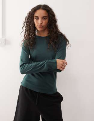 Weekday super soft long sleeve top in petrol green