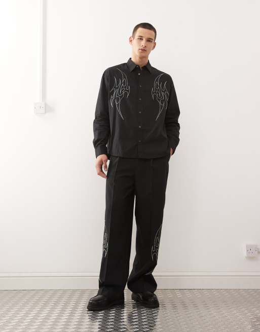 Weekday tailored pants with silver embroidery in black (part of a set)