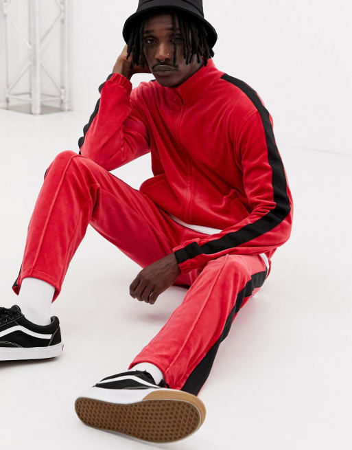 Weekday Track velour tracksuit in red