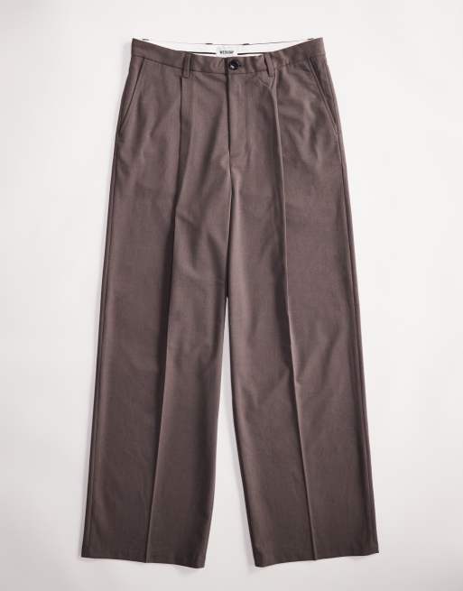 Weekday Uno loose fit tailored pants in brown melange
