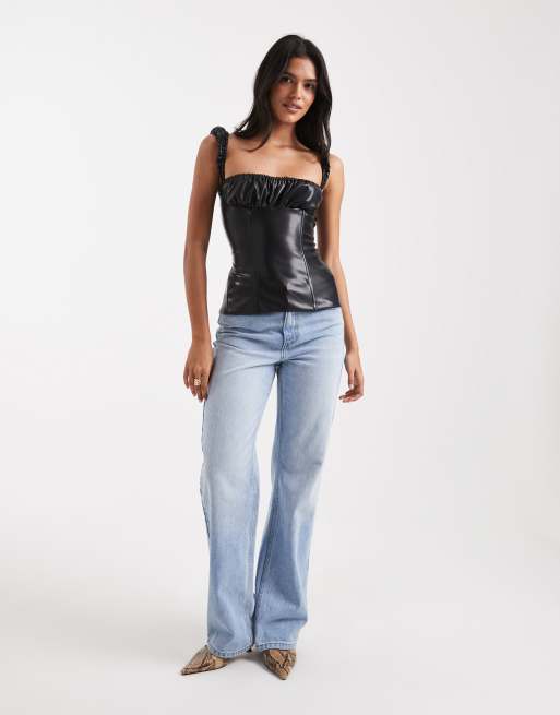WeWoreWhat leather look ruched cup corset top in black