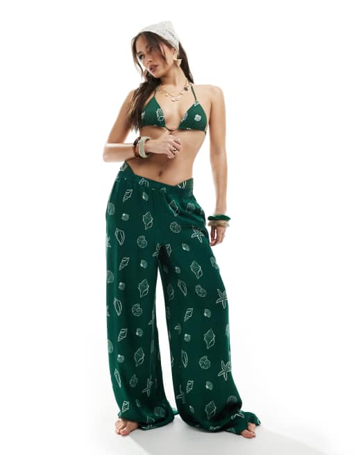 WeWoreWhat seashells wide leg beach pants in sea green
