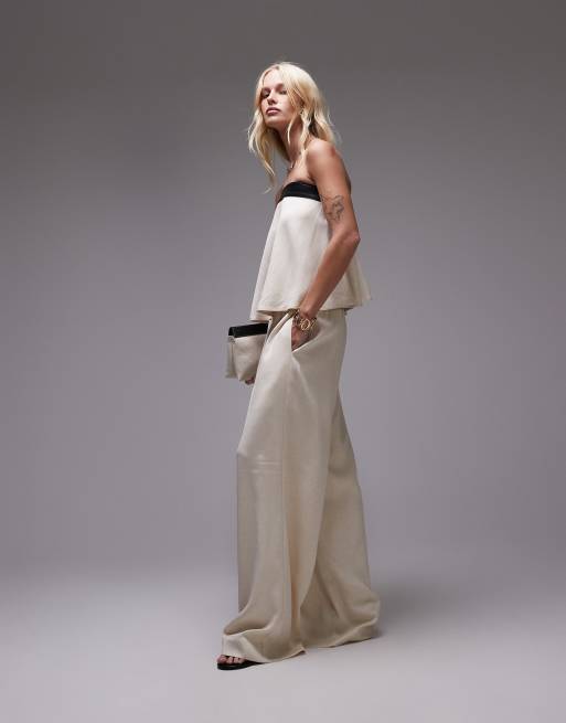 WeWoreWhat straight leg pants with contrast waist in taupe