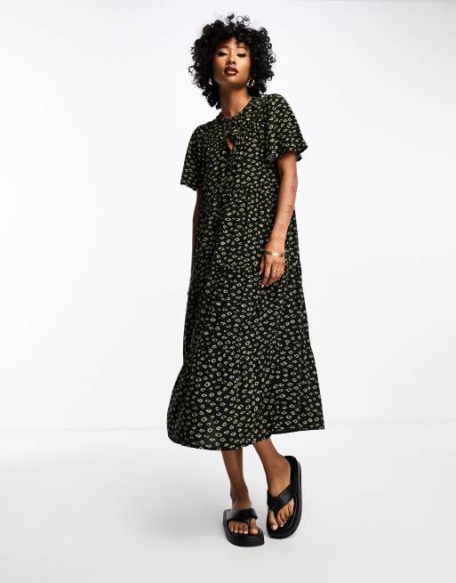 Whistles gem print midi smock dress with pockets in black