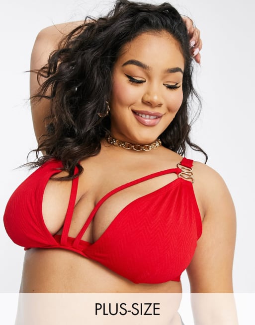 Wolf & Whistle Curve Exclusive rib triangle bikini set in red