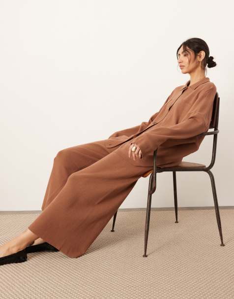 MIX & MATCHASOS EDITION knitted wide leg pants in toffee (part of a set)