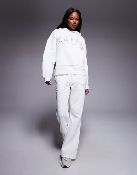 MIX & MATCHKaiia cotton blend embroidered logo oversized hoodie in white and sand (part of a set)