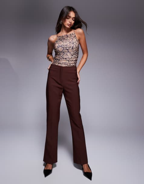 MIX & MATCHMonki fitted split hem flared pants in brown
