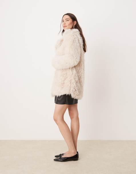 River Island belted mid length faux fur coat in cream