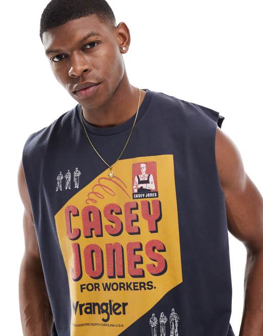 Wrangler Casey Jones workwear poster logo print relaxed heavyweight muscle tank in washed black